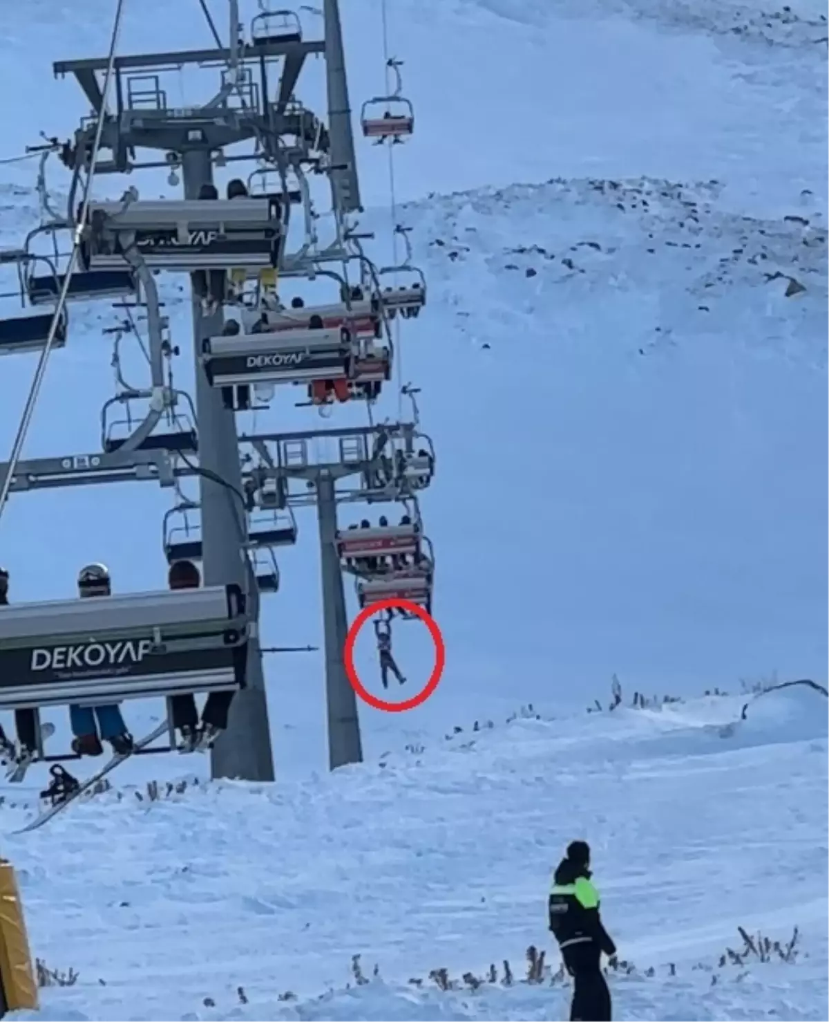 Kayakçının, snowboardu elde etmek amacıyla telesiyeje binmesi sırasında bir aksaklık meydana geldi. Kayakçı, telesiyej kablosuna takılarak kısa bir süre asılı kaldı. Çevredeki görevliler durumu hızla fark etti ve müdahale etti.