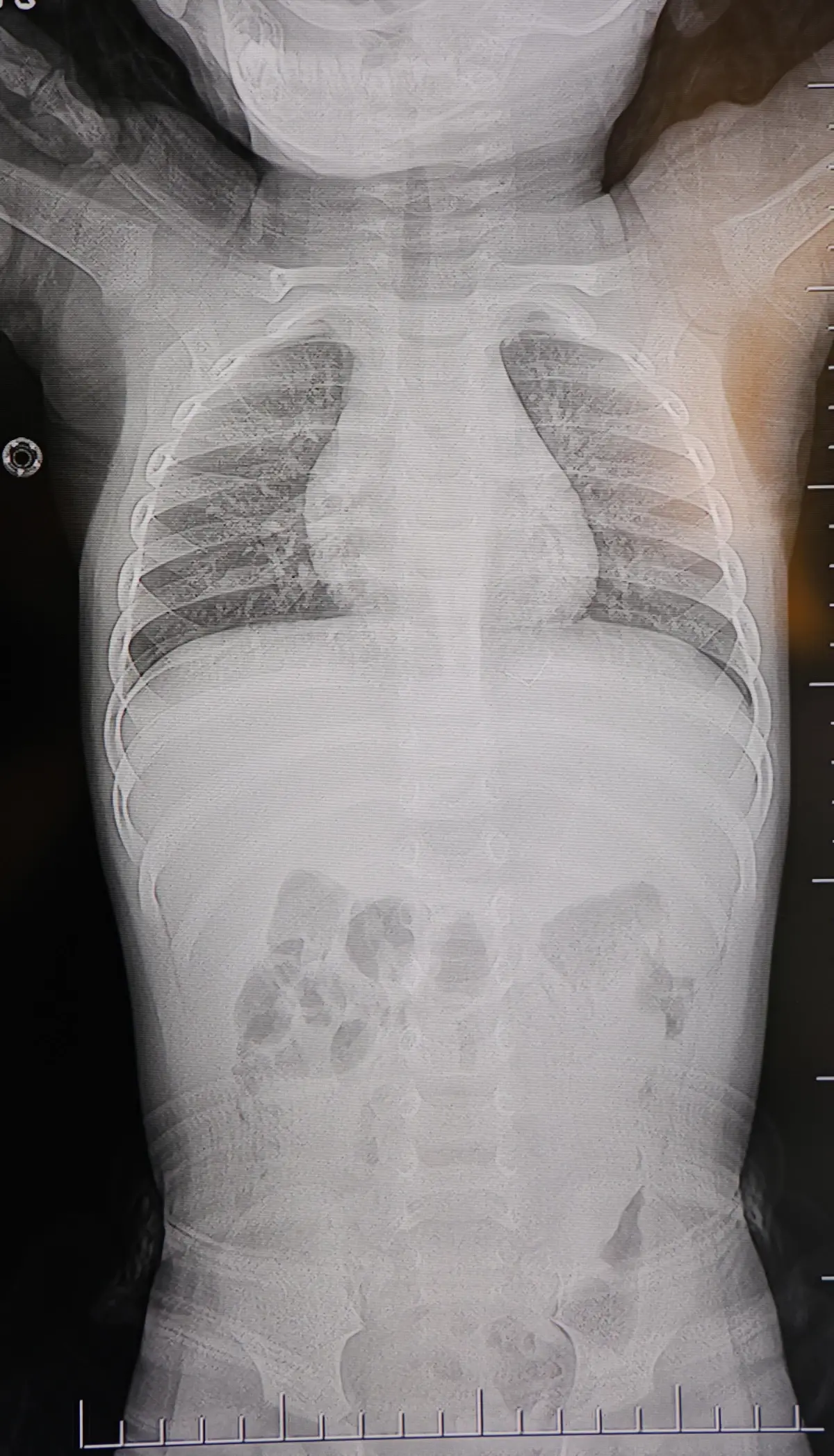 Kahramanmaraş'ta bir yaşındaki bir bebek, sırt üstü yatmak istemediği ve sürekli ağlaması nedeniyle ailesi tarafından hastaneye yönlendirildi. Yapılan detaylı muayeneler sonucunda, bebeğin sırt bölgesinden akciğer zarına doğru ilerlemiş 2 cm uzunluğunda bir zımba teli tespit edildi.
