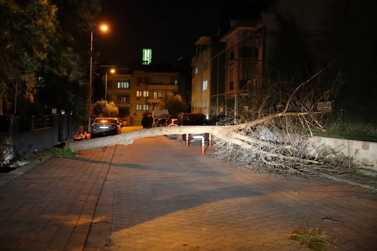 Denizli'nin Pamukkale ve Merkezefendi ilçelerinde etkili olan şiddetli rüzgar, ağaçların devrilmesine ve çeşitli maddi hasarlara yol açtı.