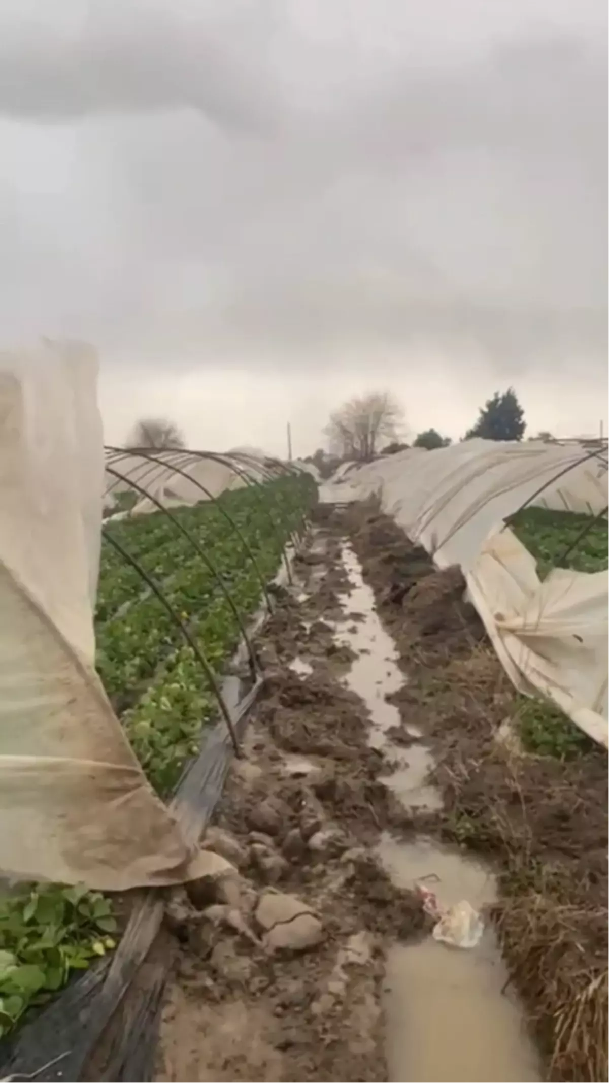 Antalya’nın Serik ilçesinde etkili olan şiddetli fırtına ve sağanak, çilek seralarını büyük ölçüde tahrip etti; çiftçiler acil destek talep ediyor.